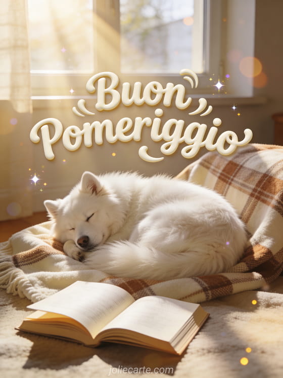 Condividi un gif animato di buon pomeriggio con questa adorabile scena del cane Samoiedo che dorme. Scopri anche buon pomeriggio o buon pomeriggio gifs.