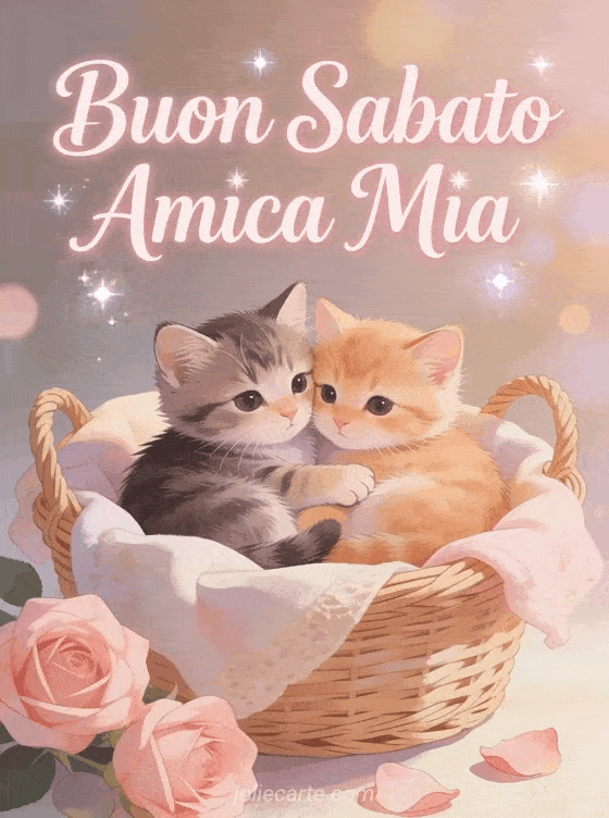 Condividi un tenero augurio del sabato con questa adorabile cartolina con due gattini che si coccolano insieme. Scopri anche una cartolina buon sabato amicizia o una cartolina buon sabato sotto la pioggia.