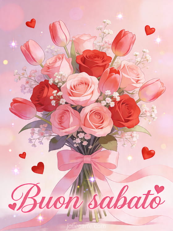 Condividi un dolce saluto di buon sabato con un bouquet di rose e tulipani per rendere la giornata più luminosa. Puoi anche scoprire buon sabato caffè baci, buon sabato e buon fine settimana e buon anno 2017 bretone.