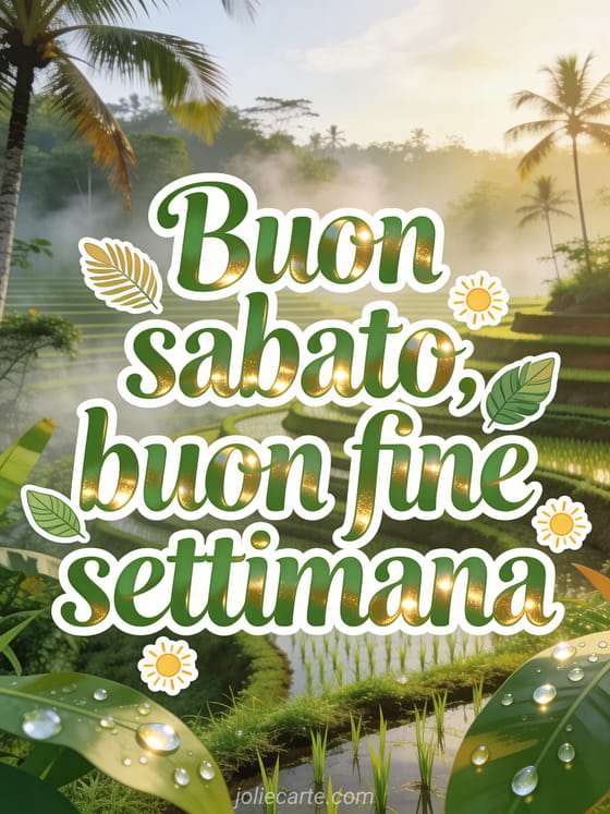 Augura a qualcuno un buon sabato e un buon fine settimana con questa splendida cartolina tropicale ispirata a Bali. Scopri anche una cartolina buon sabato gratis o grazie buon sabato per altri saluti del weekend.