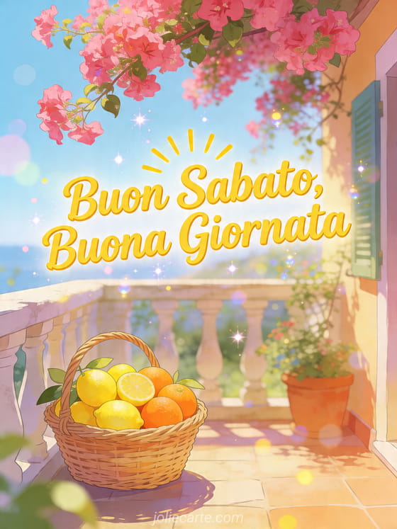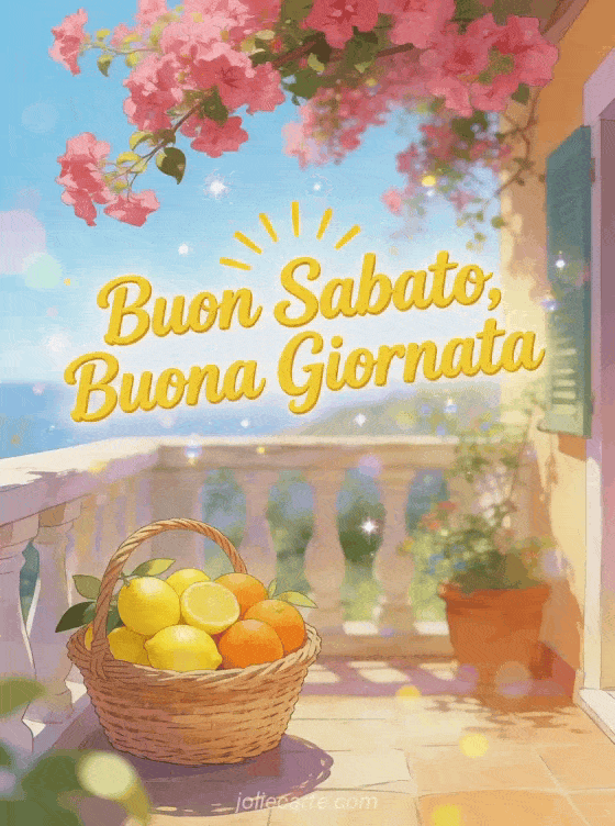 Invia un luminoso Buon sabato, buona giornata con questa cartolina gratis tra limoni, arance e sole mediterraneo. Scopri anche buon sabato belle immagini buon fine settimana, cartolina buon sabato gratis o buon sabato piove.