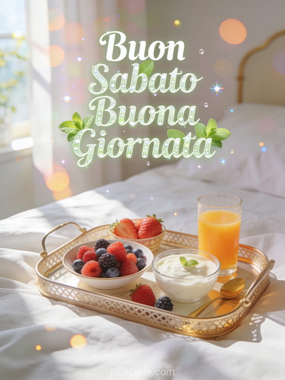 Augura a qualcuno uno splendido mattino del sabato con questa lussuosa cartolina con vassoio da colazione. Scopri anche una cartolina buon sabato citazione positiva o una cartolina buon sabato immagine gratis.
