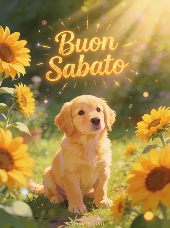 Rendi speciale il sabato di qualcuno con questa cartolina soleggiata con un golden retriever e girasoli. Scopri anche una cartolina citazione buon sabato o una cartolina buon sabato cuore mio.