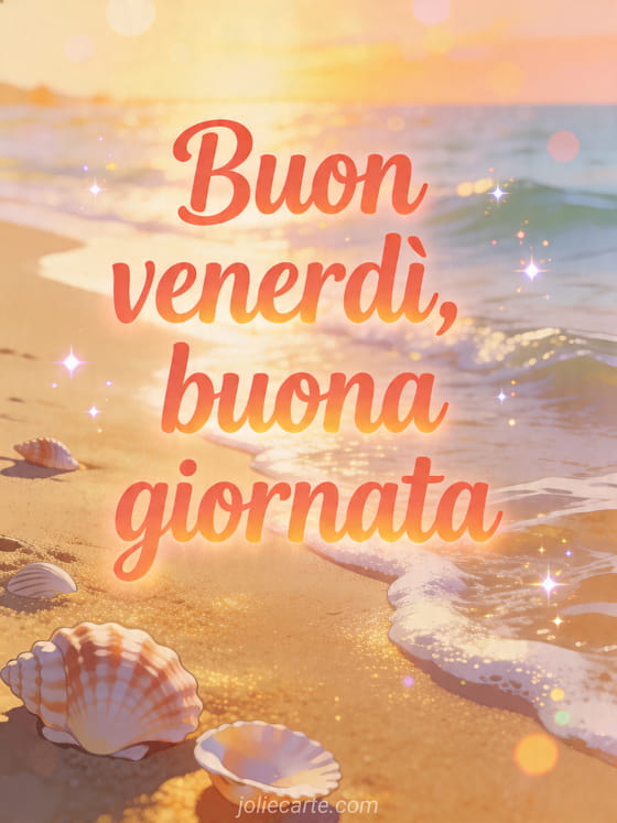 Condividi un sereno buon venerdì con questa cartolina da spiaggia immersa nella dolce luce del mattino. Scopri anche buongiorno buon venerdì, colazione buon venerdì caffè o buongiorno buon venerdì buona giornata.