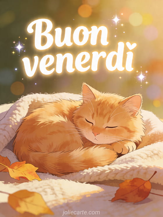 Buon venerdì un augurio accogliente di venerdì con un gatto carino