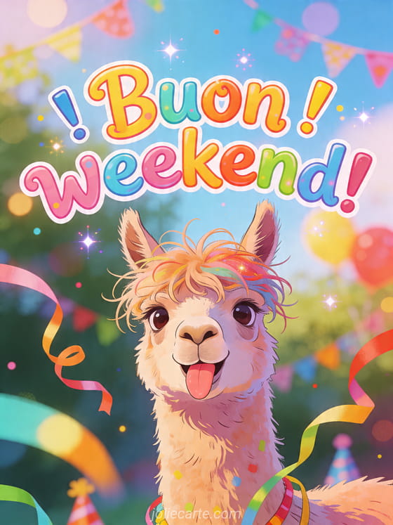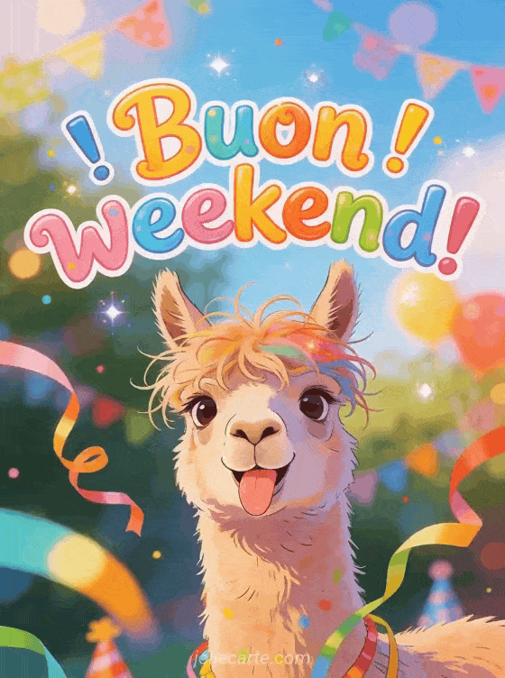 Invia questo biglietto di buon weekend divertente per regalare leggerezza prima del riposo. Scopri anche buon weekend a tutti, buon fine settimana immagine divertente o gif buon weekend soleggiato.