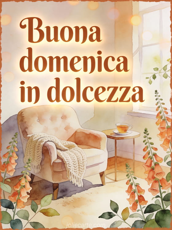 Invia buona domenica accogliente immagine con scritte cannella, una poltrona morbida, un tavolino con tè, una coperta lavorata a maglia e fiori di digitale. Scopri anche buona domenica immagini molto belle, buona domenica gif animata gif animata scintillante o una bella immagine gratis buona domenica.