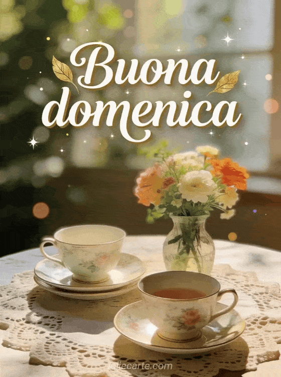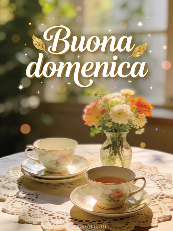 Buona domenica un saluto raffinato di domenica con tè e fiori