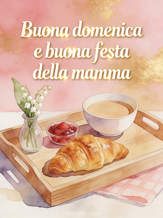 Celebra la domenica della Festa della Mamma con una tenera scena di colazione ad acquerello. Scopri anche piccola poesia festa della mamma, buona festa della mamma originale e poesia per festa della mamma.