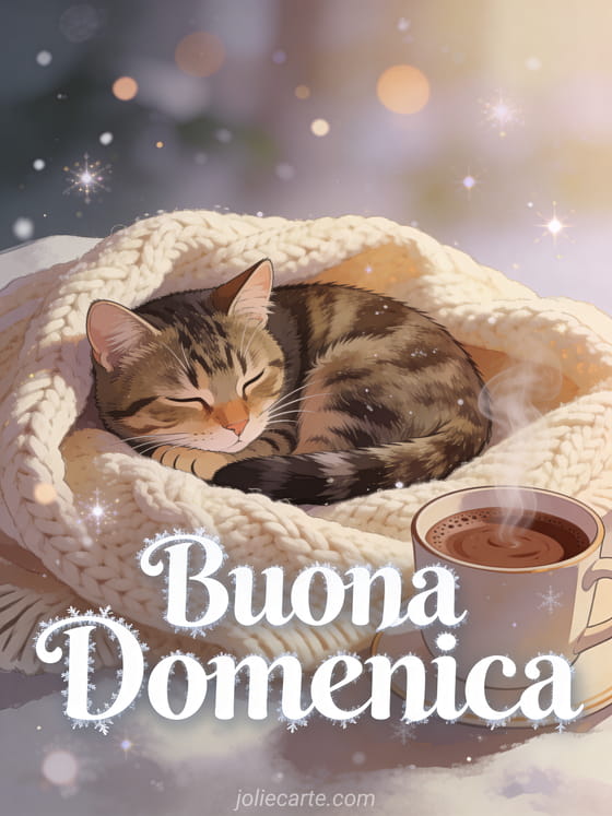 Invia un caldo biglietto di buona domenica freddo per rallegrare il fine settimana di qualcuno. Scopri anche un biglietto di buona domenica gatto o un biglietto di buona domenica baci.