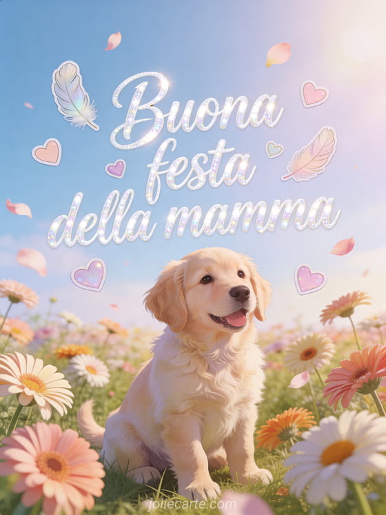 Sorprendi la mamma con queste adorabili cartoline di buona festa della mamma con calligrafia perlata e un cucciolo di labrador tra le gerbere. Scopri anche un messaggio festa della mamma per tutte le mamme o una cartolina per la festa della mamma.