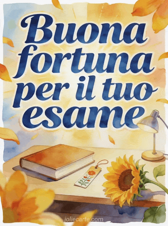 Invia buona fortuna esame gif animate gif con scritte cobalto, una scrivania da studio, un libro chiuso, un segnalibro portafortuna, una piccola lampada e un girasole. Scopri anche cartoline virtuali buona fortuna, un buona fortuna quadrifoglio immagine o un buona fortuna nuovo lavoro biglietto.