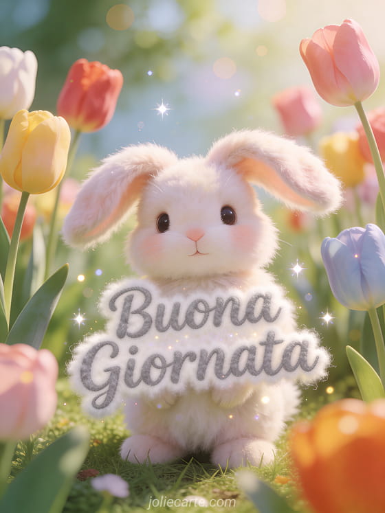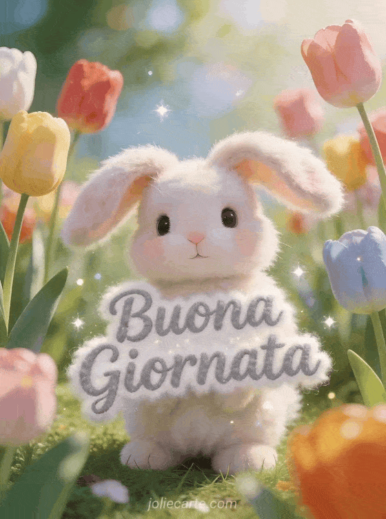 Rallegra la giornata di qualcuno con questo carino biglietto di coniglio e tulipani. Scopri anche un biglietto soleggiato gif buona giornata o un biglietto buongiorno buona giornata.