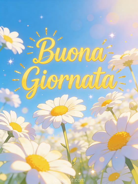 Condividi una gioiosa cartolina di buona giornata di lunedì con un campo di margherite sotto un cielo azzurro brillante. Manda un po' di sole del lunedì per rallegrare la giornata di qualcuno. Scopri anche una cartolina buon lunedì immagine o una cartolina ottimo lunedì e buona settimana.