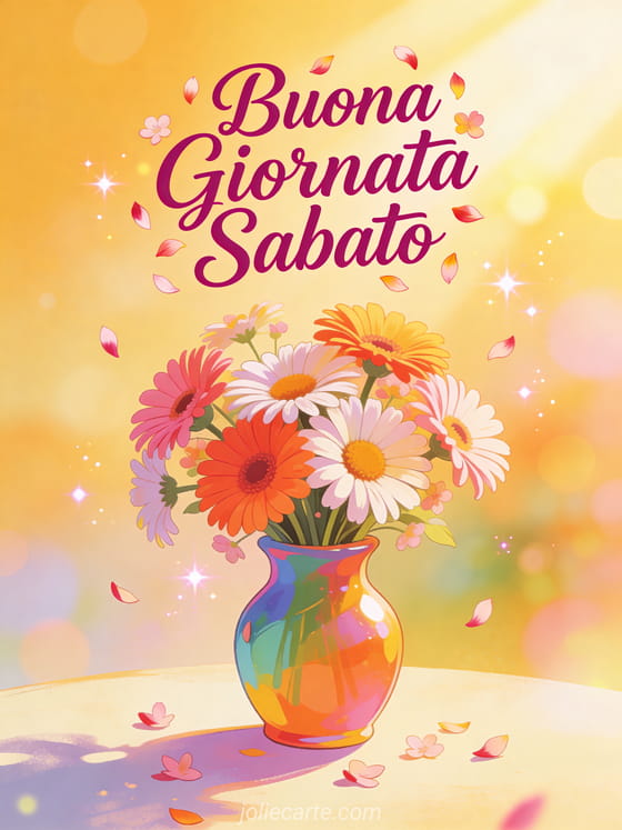 Buona giornata sabato un allegro saluto del sabato con fiori colorati
