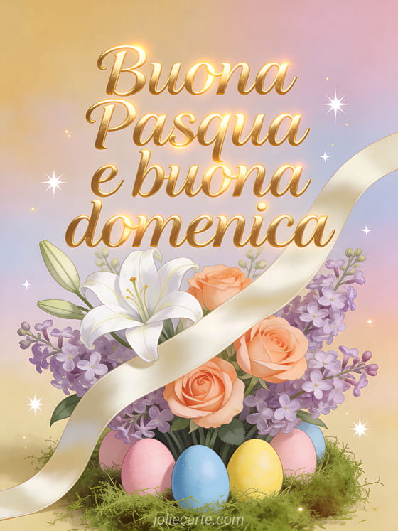Augurate una buona Pasqua e una buona domenica con questo elegante biglietto con gigli bianchi, rose pesca e uova di Pasqua in colori pastello. Scoprite anche un biglietto per il fine settimana di Pasqua, un biglietto di buona domenica di Pasqua o un biglietto di buon lunedì di Pasqua.