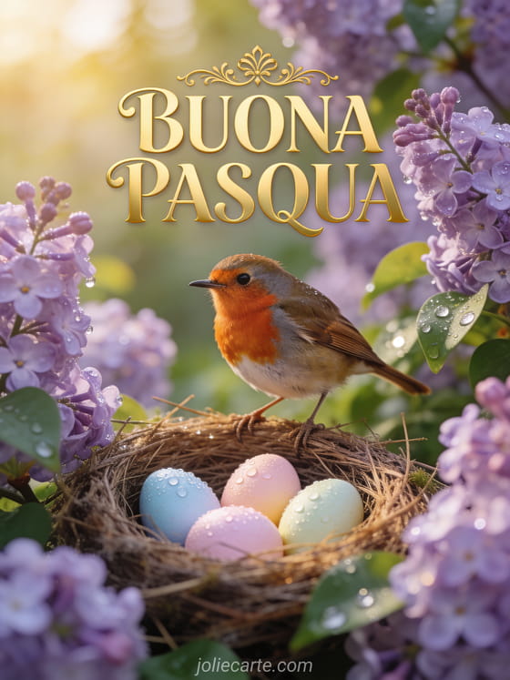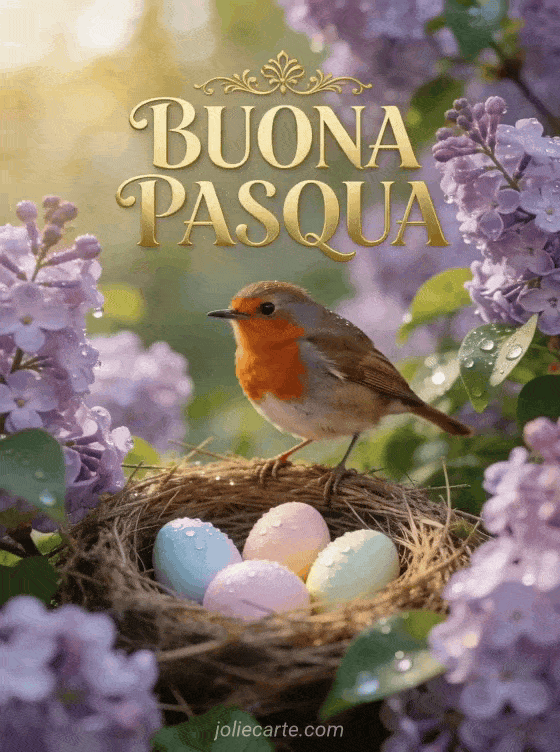 Condividi la magia di Pasqua con questa tenera cartolina gratuita con un pettirosso e fiori di primavera. Scopri anche gifs di Pasqua o immagini animate buona Pasqua.