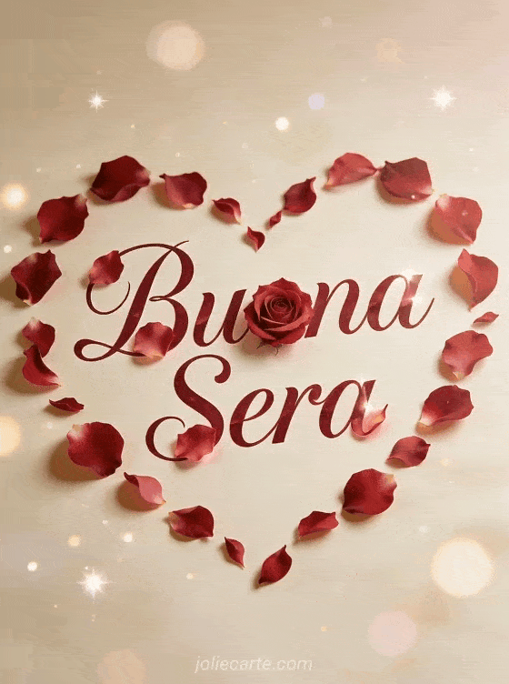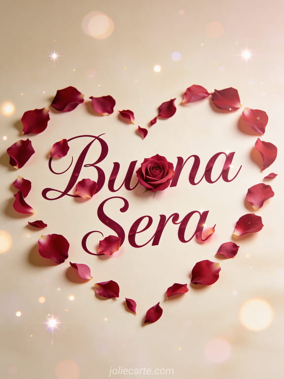 Invia dolci baci di buona sera con questa cartolina gratis con petali di rose rosse a forma di cuore. Scopri anche una buona sera immagine jpg o buona sera gif belle immagini tenere.