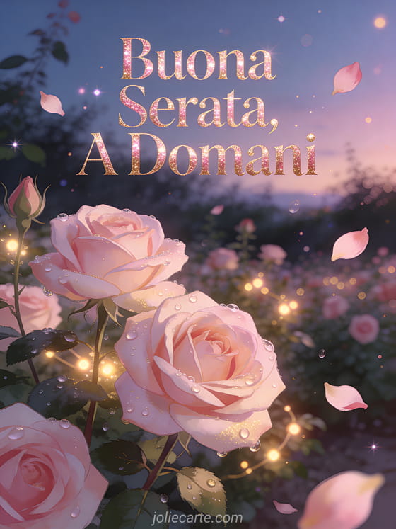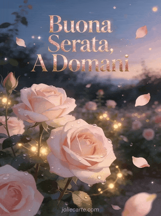 Condividi una splendida serata con questa elegante cartolina del giardino di rose al crepuscolo. Scopri anche una immagini buona serata a domani cartolina o una buonanotte a domani citazione cartolina o una gif buona serata buonanotte a domani cartolina.