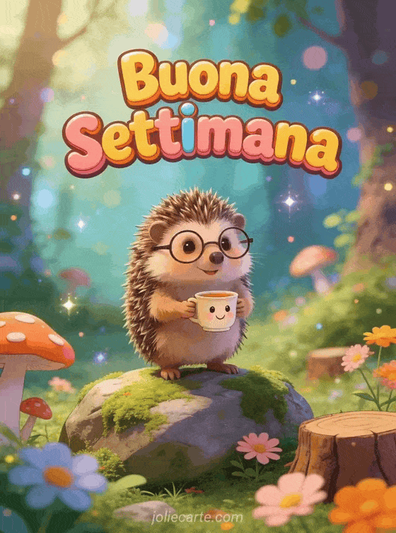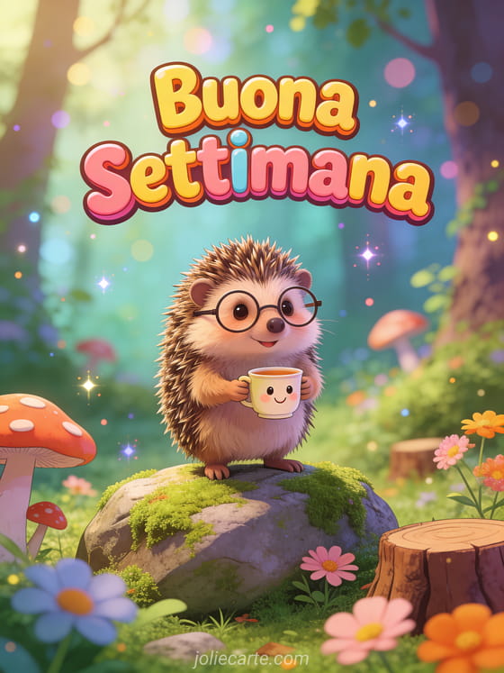 Rallegra l'inizio della settimana dei tuoi cari con questo simpatico biglietto con un adorabile riccio con gli occhiali che tiene una tazza. Scopri anche un biglietto bonne semaine divertente o un biglietto buongiorno e buona settimana.
