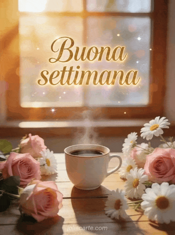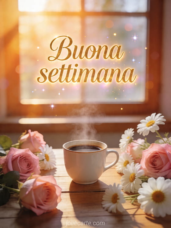 Invia una buona settimana con questa cartolina gratis e inizia i giorni con caffè, fiori ed energia positiva. Scopri anche foto buona settimana, buona settimana gif o immagine ciao buona settimana baci.