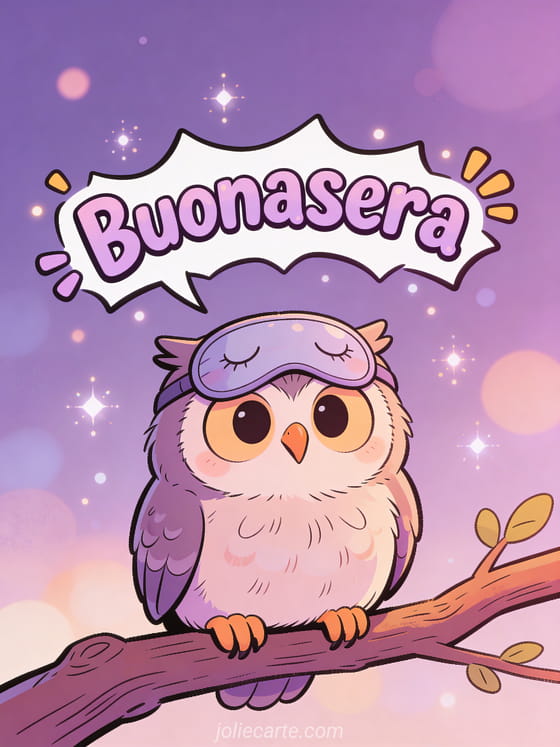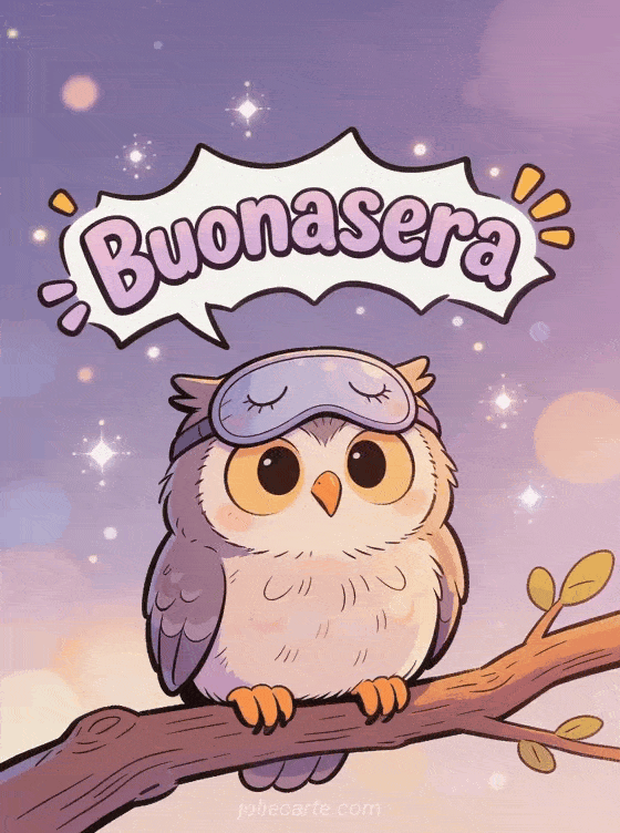 Invia una divertente cartolina buonasera con un gufo buffo con questa cartolina gratis. Scopri anche buonasera immagine con baci o buona serata davanti al camino.