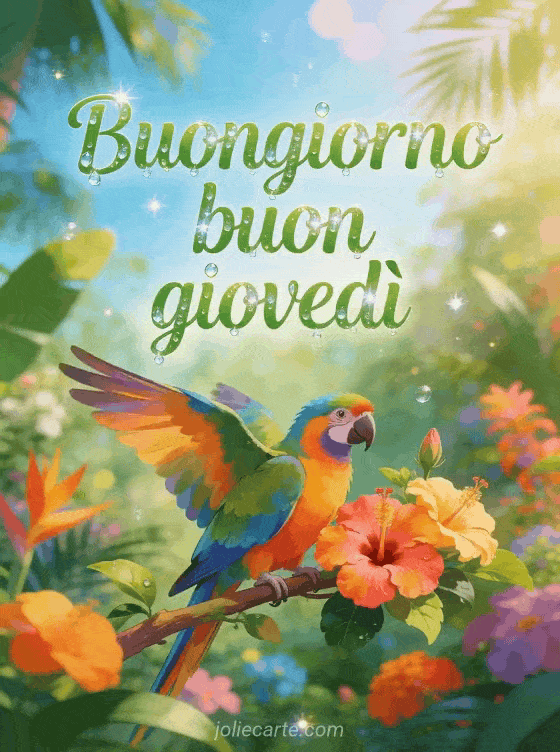 Rallegra il giovedì di qualcuno con questo vibrante saluto tropicale. Scopri anche un'immagine gratis buon giovedì baci o un gif buon giovedì soleggiato.