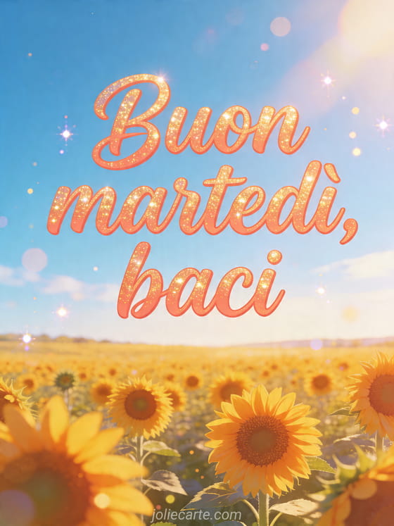 buon martedì, baci un saluto radioso di martedì pieno di sole, estate e affetto