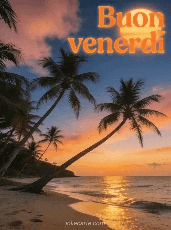 Buon venerdì un caldo saluto del venerdì con atmosfera rilassante di tramonto