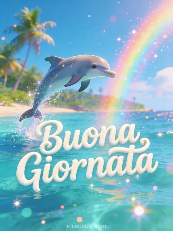 Condividi gioia con questa cartolina di buona giornata con un delfino giocoso che salta fuori da acque turchesi scintillanti. Scopri anche una cartolina di un piccolo pensiero per te buona giornata o di buona giornata foto.