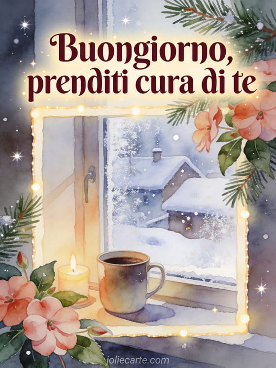 Buongiorno, prenditi cura di te un caloroso augurio di mattina invernale