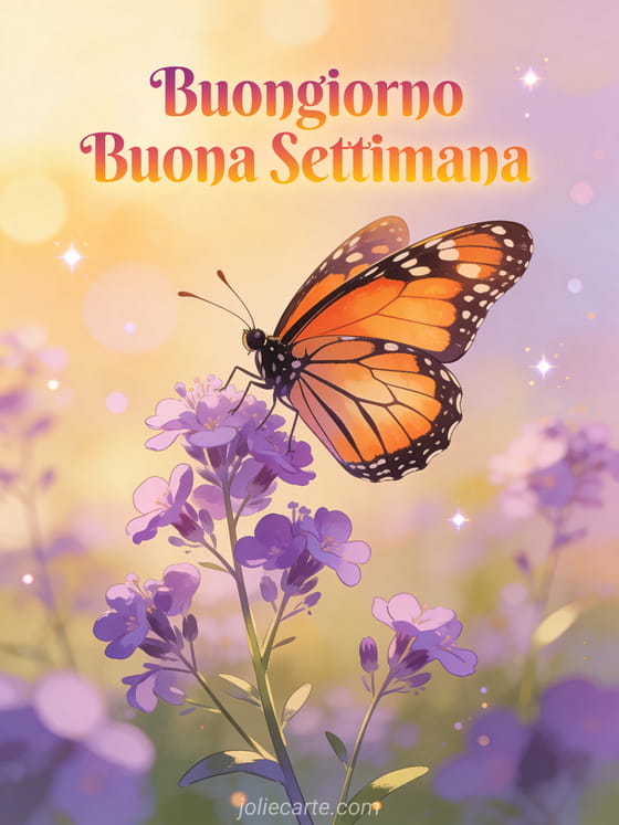 Inizia il lunedì di qualcuno con un bel messaggio di speranza con una farfalla monarca su fiori selvatici viola. Scopri anche una buon lunedì immagini gratis o una buon lunedì buona settimana baci.