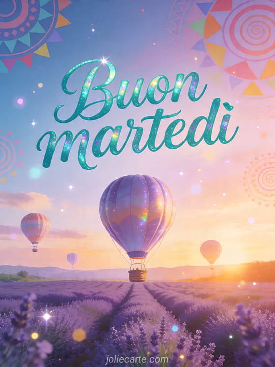 buon martedì un saluto da sogno per martedì con campi di lavanda e colori dell'alba