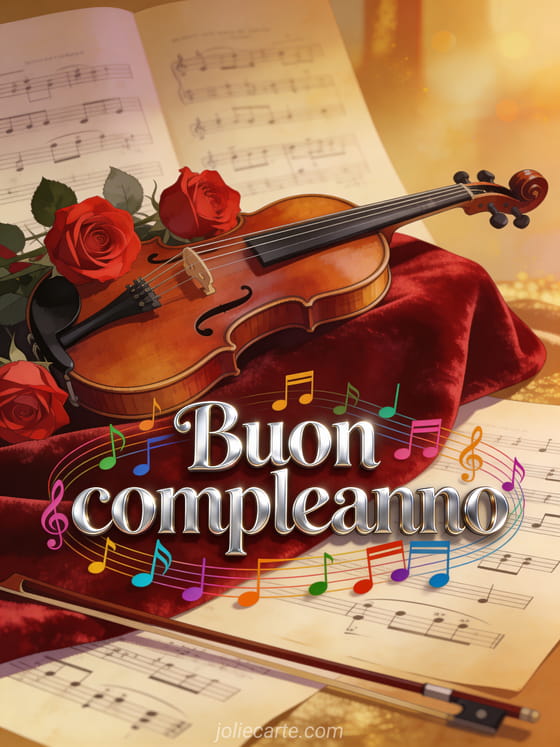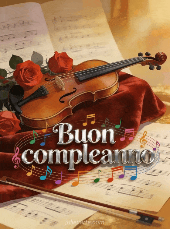 Delizia i tuoi cari con questa cartolina di compleanno animata con un violino dorato e un'elegante atmosfera jazz. Scopri anche immagini animate buon compleanno gratis o un buon compleanno fiori gif animata per altri saluti animati.