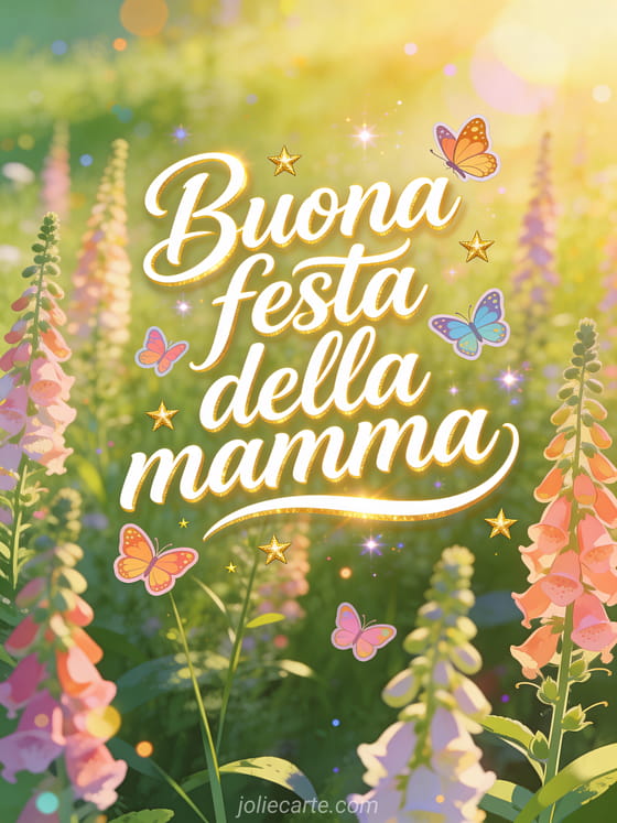 Cartoline festa della mamma cartoline vibranti e gioiose per la festa della mamma con farfalle colorate e digitali in un prato primaverile