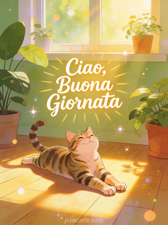 Biglietto ciao buona giornata gatto gratis