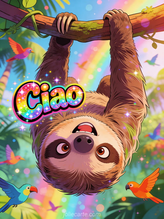 Fai ridere qualcuno con questa cartolina di ciao con il bradipo a testa in giù. Scopri anche una ciao piccolo cartolina o una ciao piccolo pappagallino cartolina o una ciao foto cartolina.
