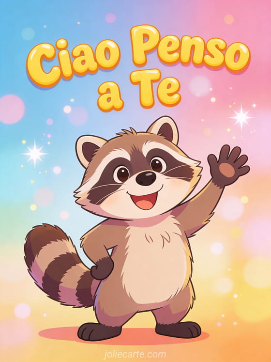 Invia una divertente cartolina ciao penso a te con un adorabile procione che saluta. Scopri anche una cartolina ti penso tantissimo o una cartolina dolce penso a te.