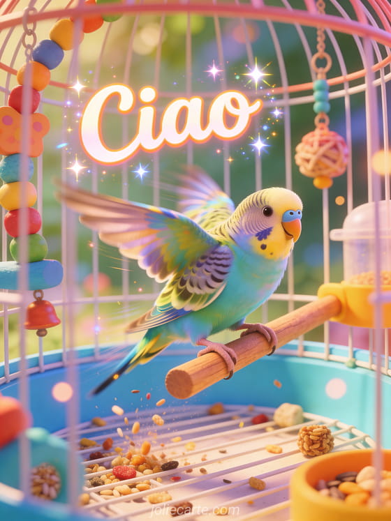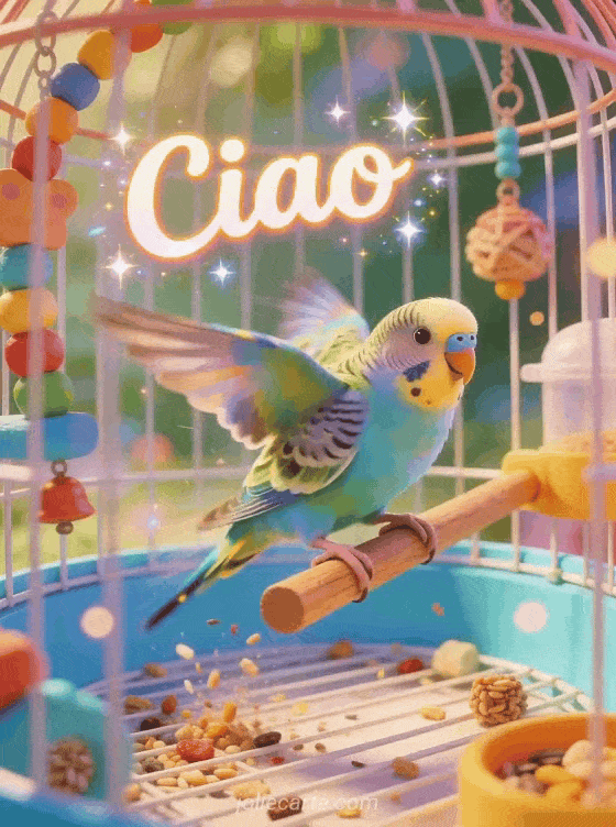 Invia questo divertente gif animato di ciao con un pappagallino saltellante sul suo trespolo. Perfetto per un saluto allegro. Scopri anche una cartolina ciao buongiorno gif o una cartolina piccolo ciao bacioni.