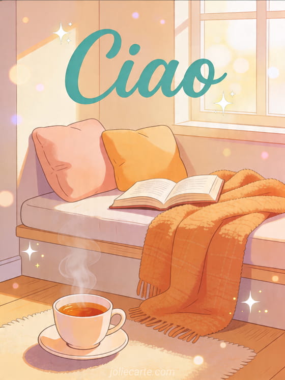 Condividi questo rilassante biglietto di ciao con un angolo lettura accogliente, cuscini morbidi, una coperta calda e una tazza di tè. Puoi anche scoprire ciao mamma, sms buongiorno amichevole e messaggio buongiorno tesoro mio.
