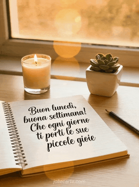 Invia questa cartolina calorosa per augurare un buon lunedì e una settimana piena di piccole gioie. Scopri anche una cartolina sms buona settimana e buon lunedì o una cartolina caffè buon lunedì buona settimana.