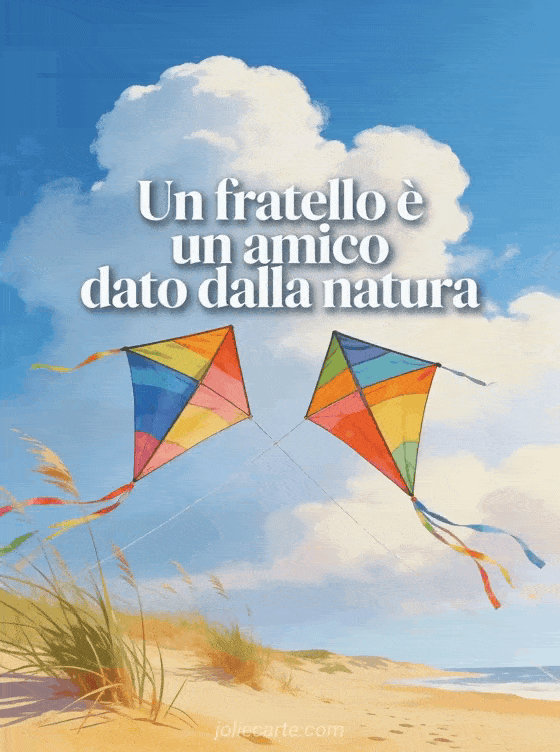 Condividi una citazione affettuosa di compleanno per fratello con due aquiloni colorati che volano fianco a fianco in un cielo azzurro d'estate sopra sabbia dorata ed erbe delle dune. Puoi inviare anche un mio fratello buon compleanno fratellone umorismo, un buon compleanno fratellino o un compleanno fratellino.