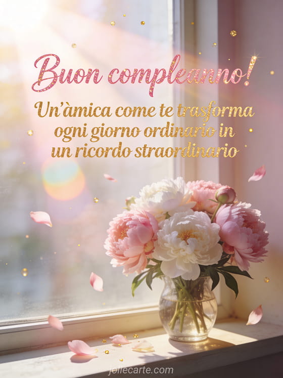 Invia una citazione di compleanno per la migliore amica con una cartolina floreale elegante di peonie, petali morbidi e luce dorata. Scopri anche citazione per augurare un compleanno, citazione allegra compleanno e buon compleanno citazioni.