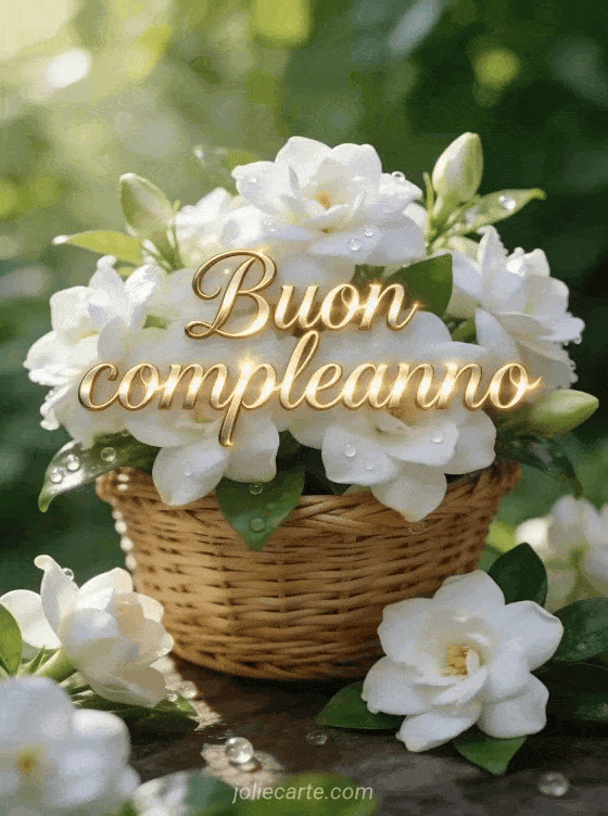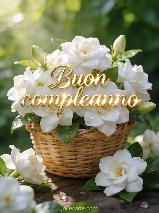 Condividi questo biglietto elegante con gardenie bianche e gelsomino per un messaggio pieno di affetto. Scopri anche buon compleanno amica lontana, buon compleanno amici d'infanzia e biglietto buon compleanno camion.