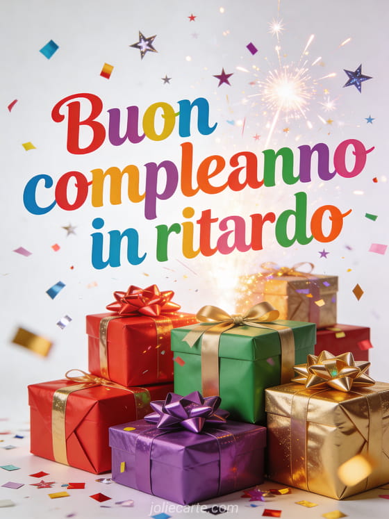 Condividi questo biglietto festivo di compleanno in ritardo e rendi speciali gli auguri anche se tardivi. Scopri anche immagini buon compleanno in ritardo, messaggio di compleanno in ritardo o immagine compleanno in ritardo.