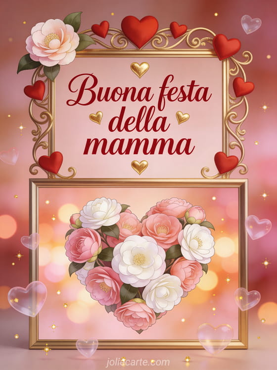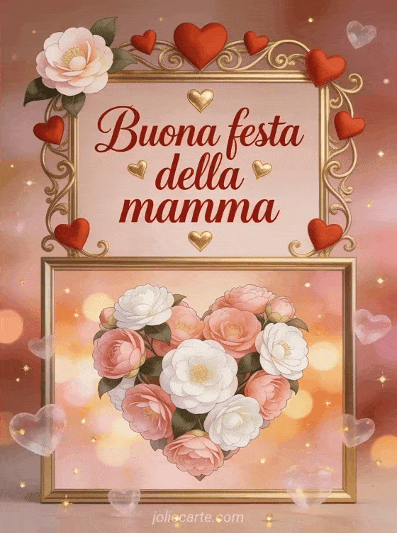 Celebra la mamma con questo biglietto romantico a forma di cuore, delicato e luminoso. Scopri anche auguri di festa della mamma, foto festa della mamma e festa della mamma facebook.