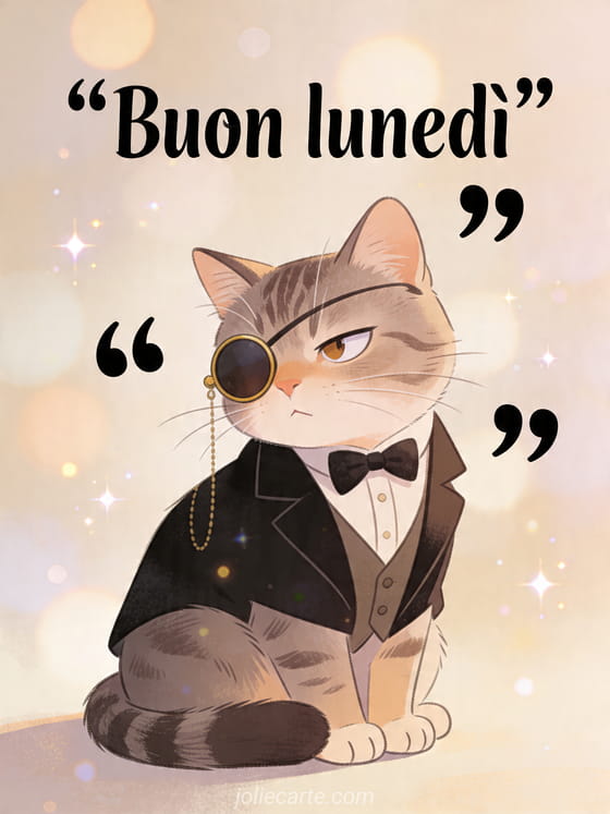 Invia un biglietto di Buon lunedì con un gatto per niente impressionato e un monocolo per una dose di ironia. Scopri anche buon lunedì mattina, buon lunedì buona settimana caffè e buona settimana buon lunedì.