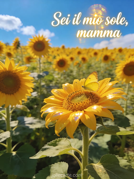 Celebra la Festa della Mamma con un paesaggio radioso di girasoli pieno d'amore. Scopri anche bouquet festa della mamma, sms per augurare buona festa della mamma e la festa della mamma.