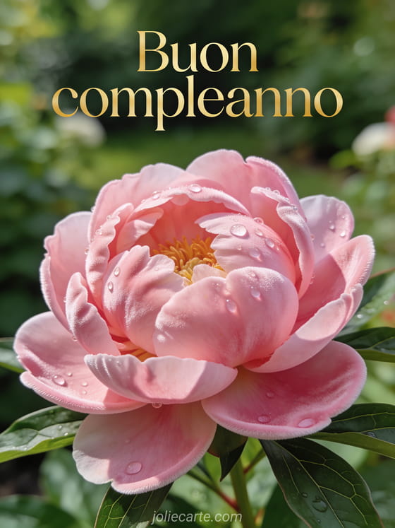 Condividi una cartolina di compleanno chic con una peonia in macro e un'atmosfera naturale delicata. Scopri anche testo buon compleanno donna, buon e felice compleanno donna e immagine buon compleanno donna umorismo.