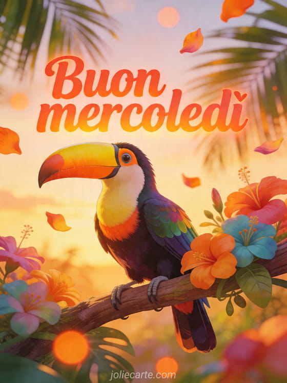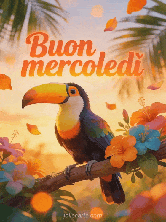 Invia un biglietto di Buon mercoledì con un tocco tropicale per illuminare la giornata. Scopri anche mercoledì mercoledì immagine buongiorno e buona giornata, buon mercoledì e buona giornata gif e messaggio buon mercoledì.